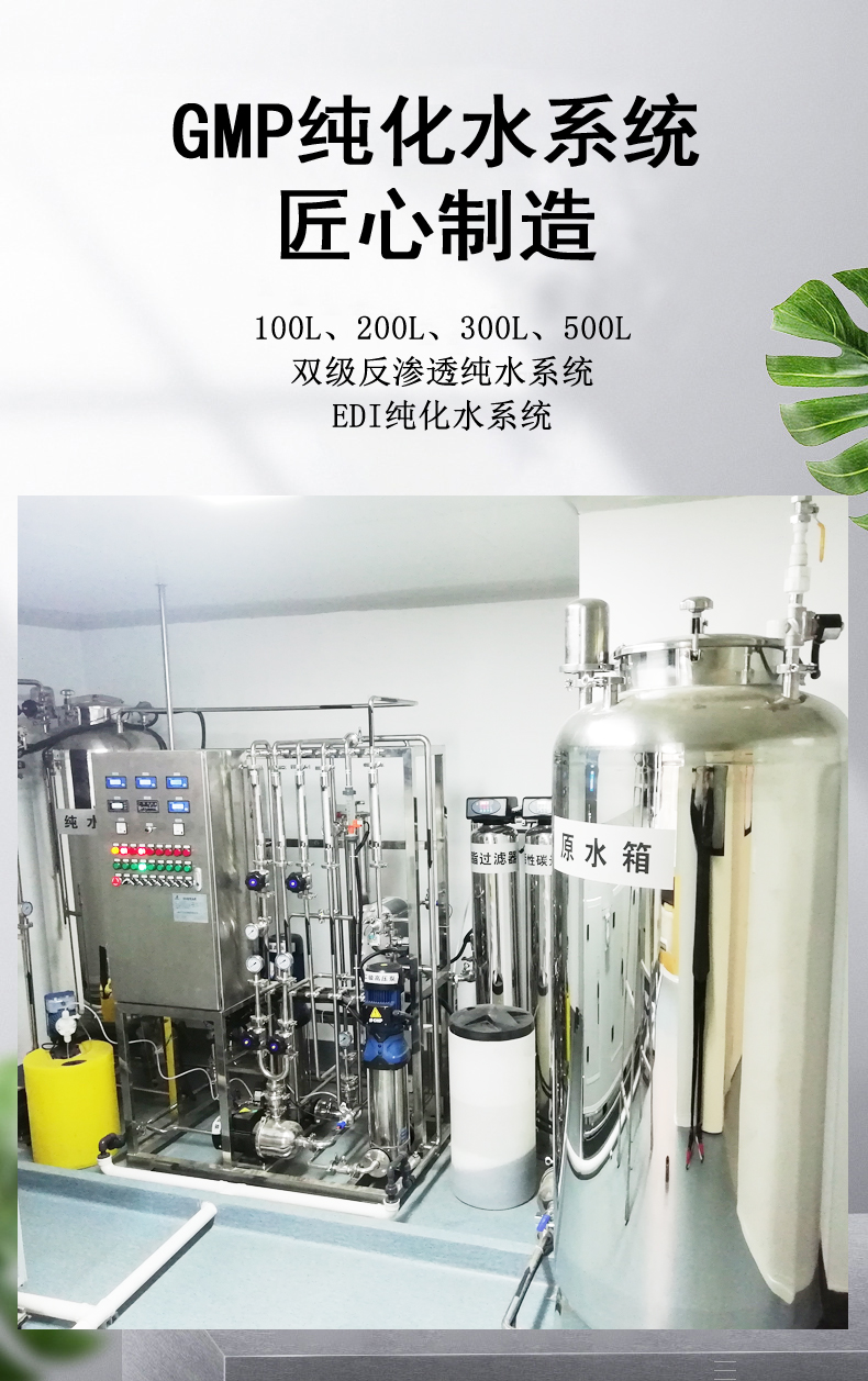 雙級反滲透+EDI系統 100L、200L、500L、1000L每小時純化水制藥純水設備系統